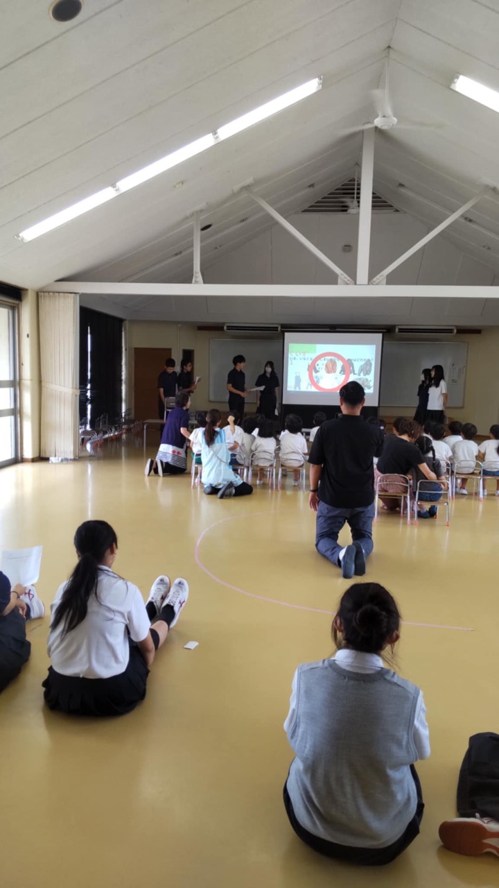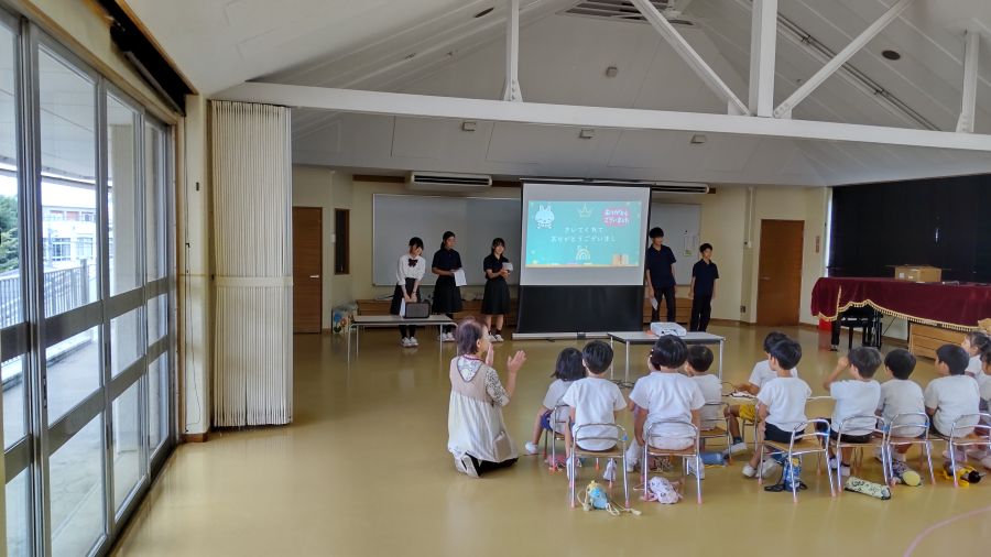 9月18日と19日の二日間、桜美林中学校の生徒さんが幼稚園を訪問くださいました。総合学習の一環で、5歳児(園では年長さんになります)にSDGsをどう伝えるか、というテーマのもと5つのグループがプレゼンテーションの準備をしてこられました。