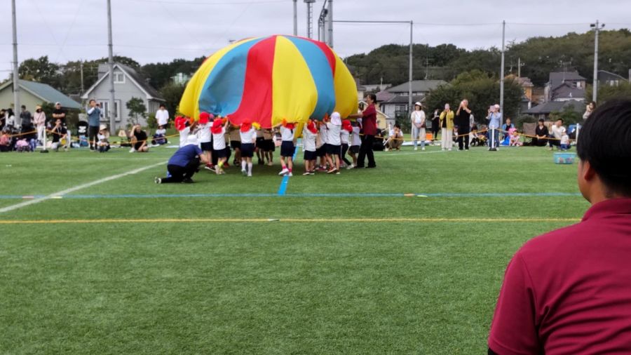 その後はリレーや、卒園児たちを含めた玉入れ、そして年長児と保護者の騎馬戦と、集まった皆で楽しい一日を過ごすことができました。大きなケガなく終えることができ、感謝です。