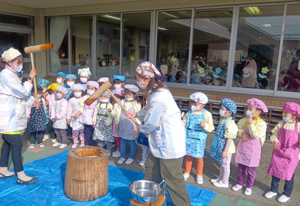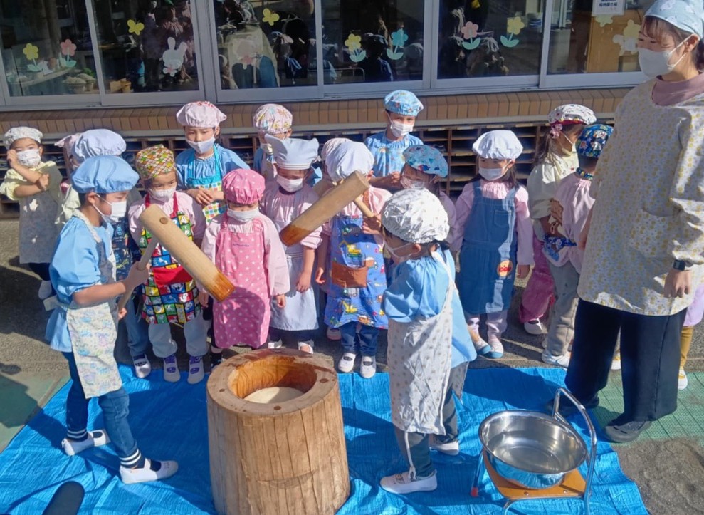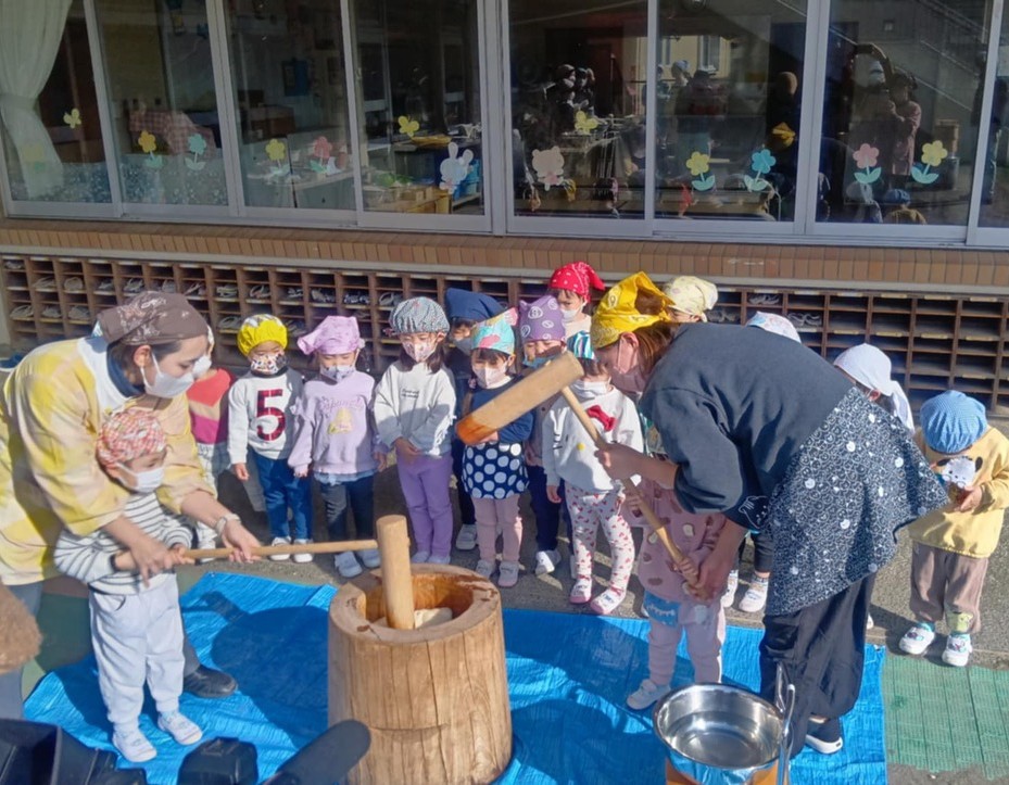 出来上がったお餅は、保護者の方々が、それぞれ切り分けてくださり、子どもたちはそうしたお餅をお昼に食べました。きなこ、甘醤油、大福まんじゅう、「今日は残さず全部食べた」と満足そうに話してくれる子、準備をしてくれた大人に「おもち、美味しかった」とお礼を伝える子、それらの言葉に大人の皆さんも疲れが少し飛んでいったことでしょう。