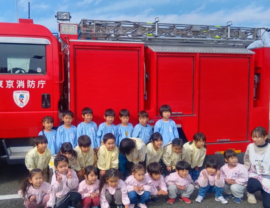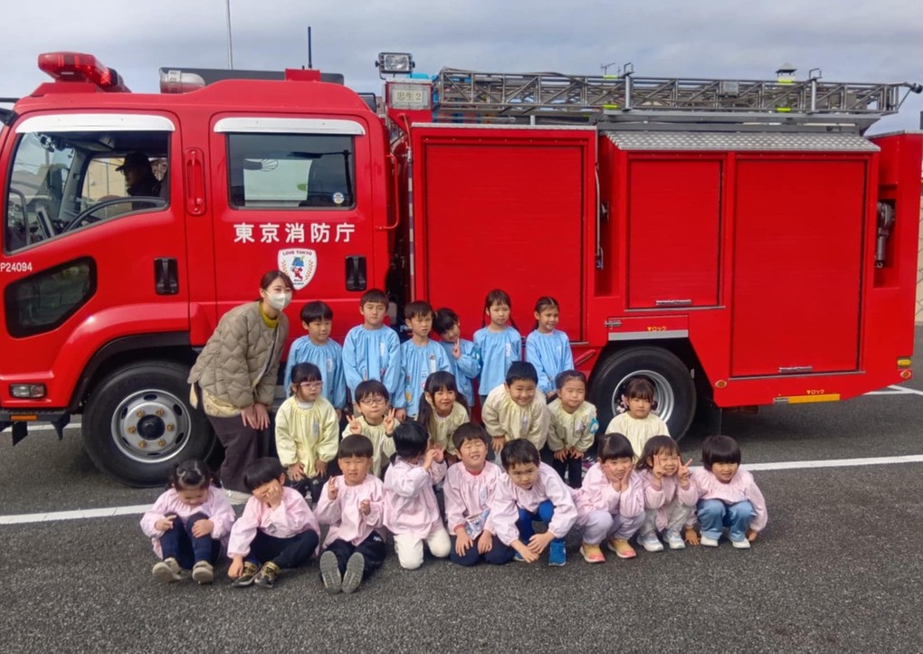 今回来園くださった隊員の中には、6月の花の日に消防署にお花を届けに行った際にも対応くださった方もあり、そのことを覚えて喜んでくださっていました。子どもたちも隊員からの説明を目を輝かせながら聞いていました。