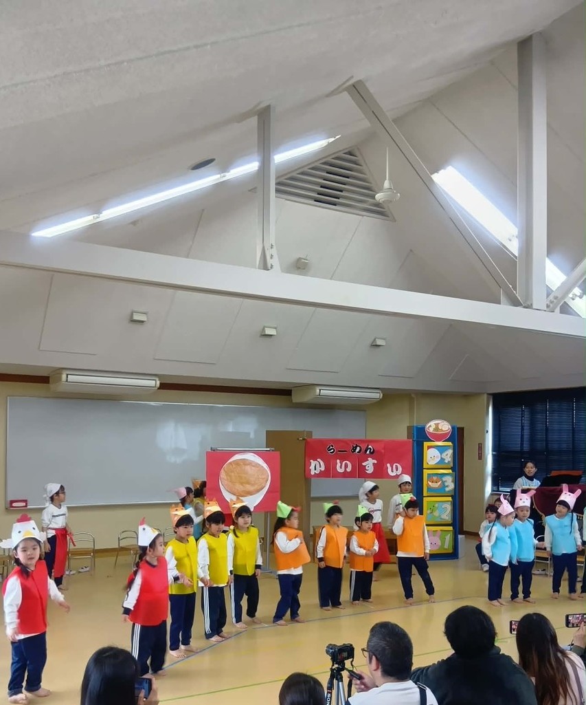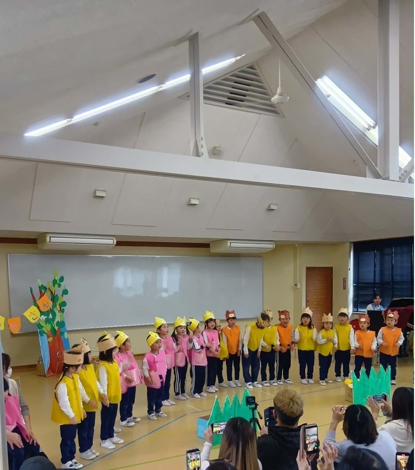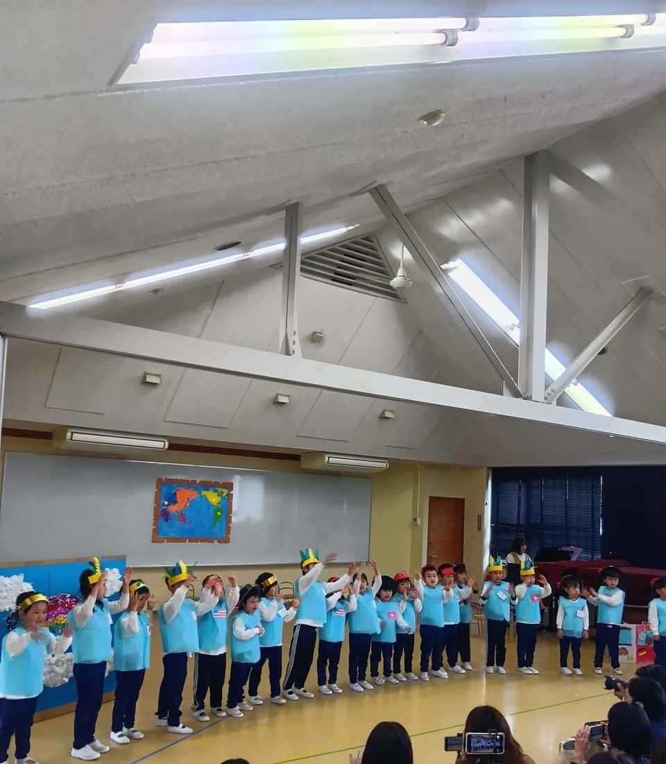 それぞれの発表を通して、各クラスの日常、どんな遊びや関心がそこにあったのかを窺い知ることができました。この日は、お家の方々も来園、みんなで子どもたちの幼稚園の様子、そして子どもたちの成長を喜ぶ機会となりました。