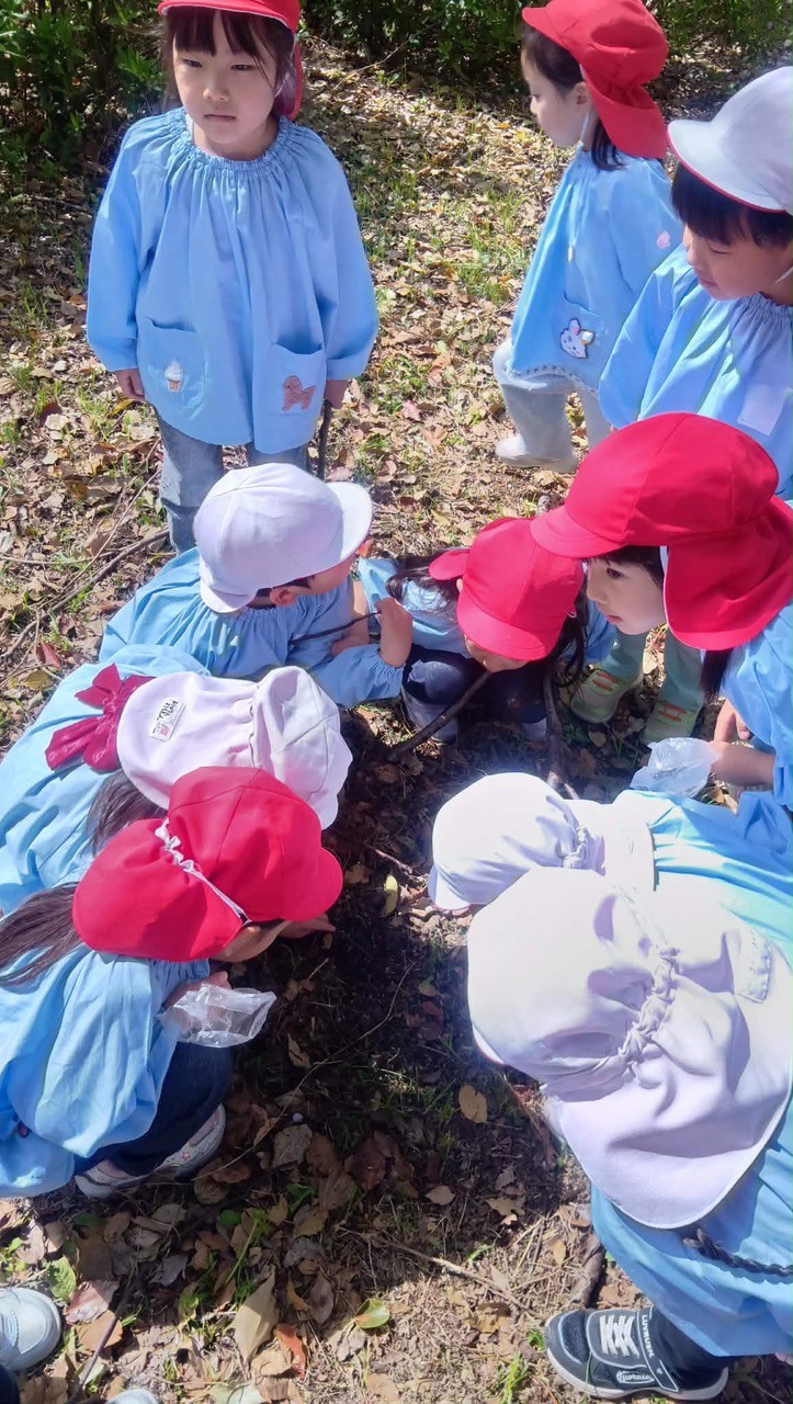 幼稚園裏に、学園所有の自然空間「おやま」があります。園児たちが好きな場所の一つです。今日は、新年長さんだけで「おやま」へ行きました。みんなで楽しく遊んできました。こうした学園の施設を存分に使えるのも、総合学園の中にある幼稚園のうれしいところです。これから1年間、何度ここにくるでしょうか。