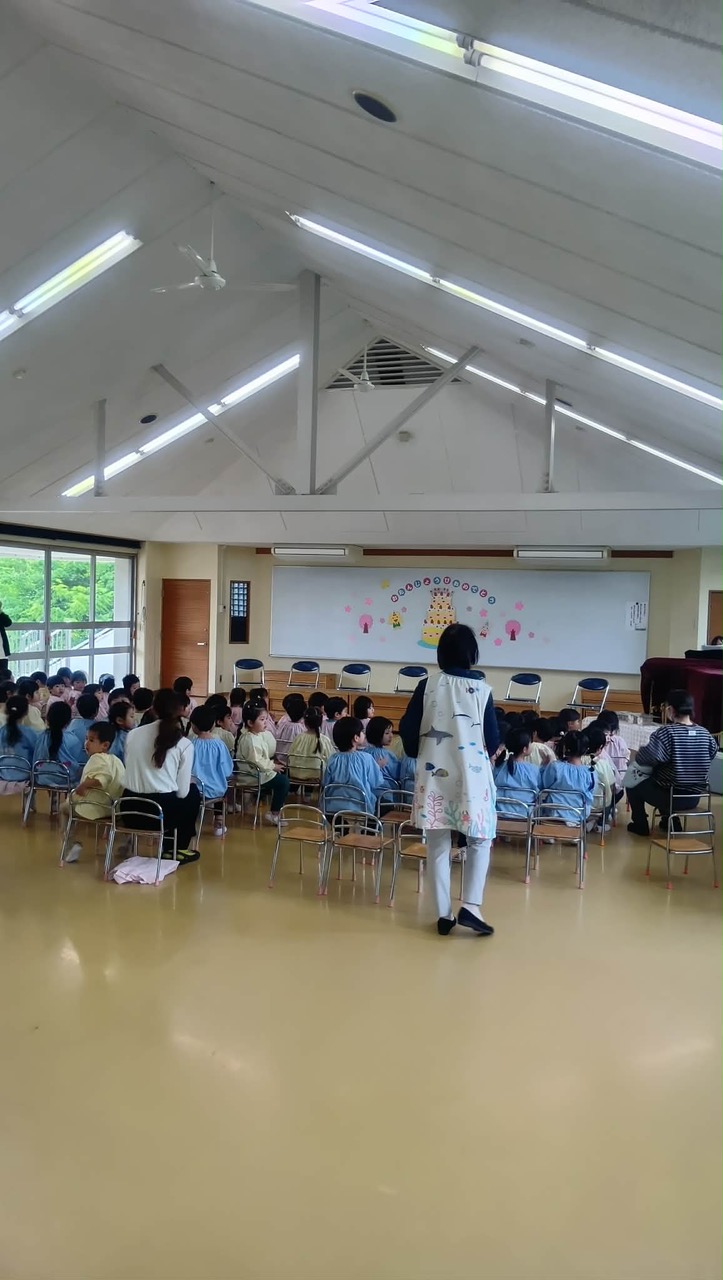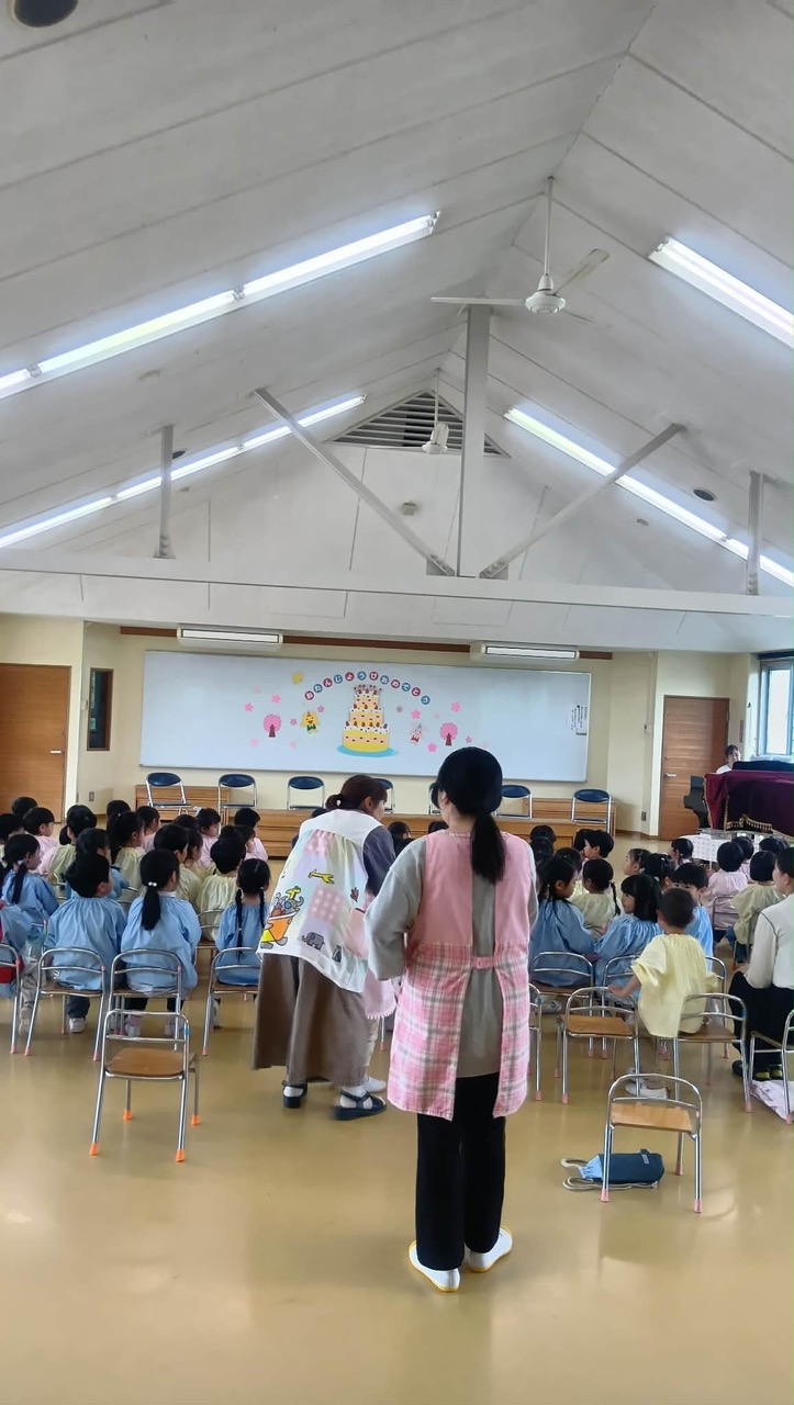 今日は幼稚園のお誕生会でした。誕生者の保護者を招いて、4月に誕生日を迎えるお友達をみんなでお祝いしました。